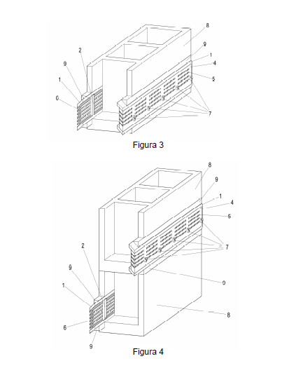 - La Fig. 1, muestra un despiece del zócalo transpirable.