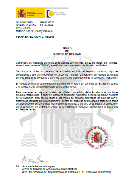 El presente Modelo de Utilidad a que se refiere la presente Memoria, se destina a garantizar